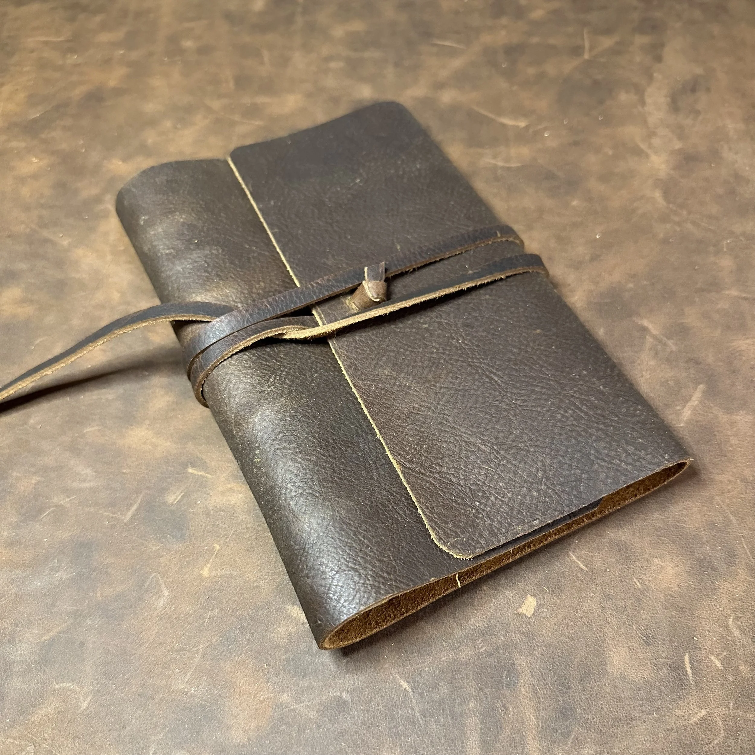 I began photographing and scanning the pages, trying to find a way to get quality digital versions of each page. Once I figured that out, I had two graphic designers (including my son, Pop’s great-great-grandson) prepare the pages for print. The final piece was finding a cover that fit Pop’s story and nothing I found worked. In the end, I learned some simple leather crafting, bought a hide of leather and made the first 35 journals myself.
